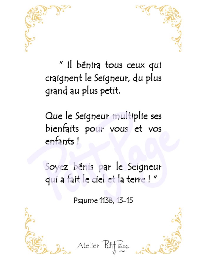 Pour inscrire du texte au verso, ajouter au panier le produit "personnalisation au verso", indépendamment des images/signets. Vous pourrez entrer le texte de votre choix. Le forfait s'applique indépendamment du nombre d'image. Pas de personnalisation pour les assortiments ou en deçà de 30 images identiques