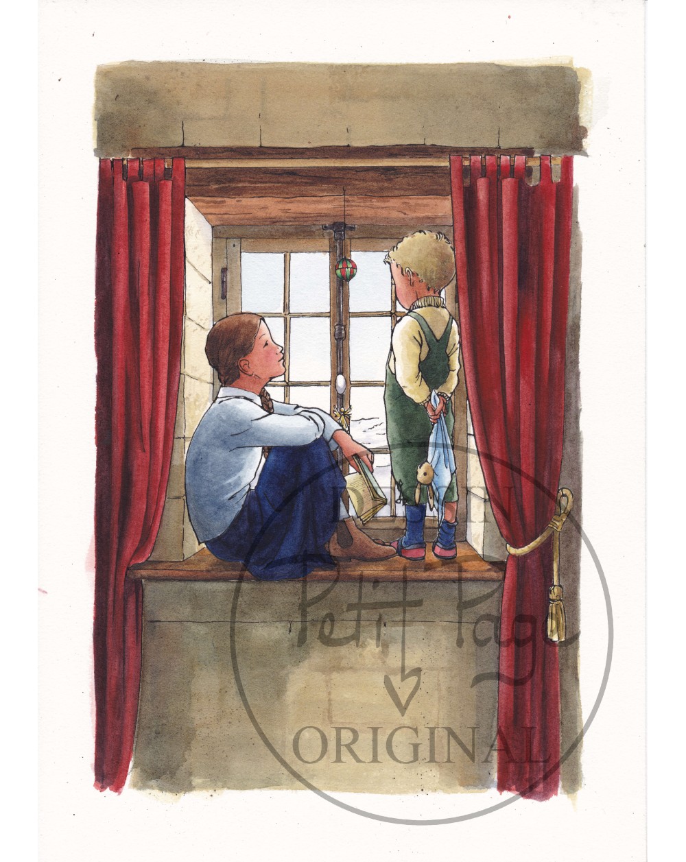Aquarelle originale. Format: 21 x 29.7 cm. Papier Arches satiné 300g. Possibilité de rajouter une auréole au crayon de couleur sur demande dans les notes au moment de la commande.