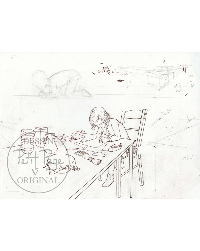 Envoyé avec un certificat de cession garantissant l'authenticité du dessin et encadrant l'utilisation de l'image. Les originaux ici en vente sont cédés seulement à 0 titre d'objet, sans aucun droit de reproduction ni d'exploitation, ni à titre privé ni à titre public.