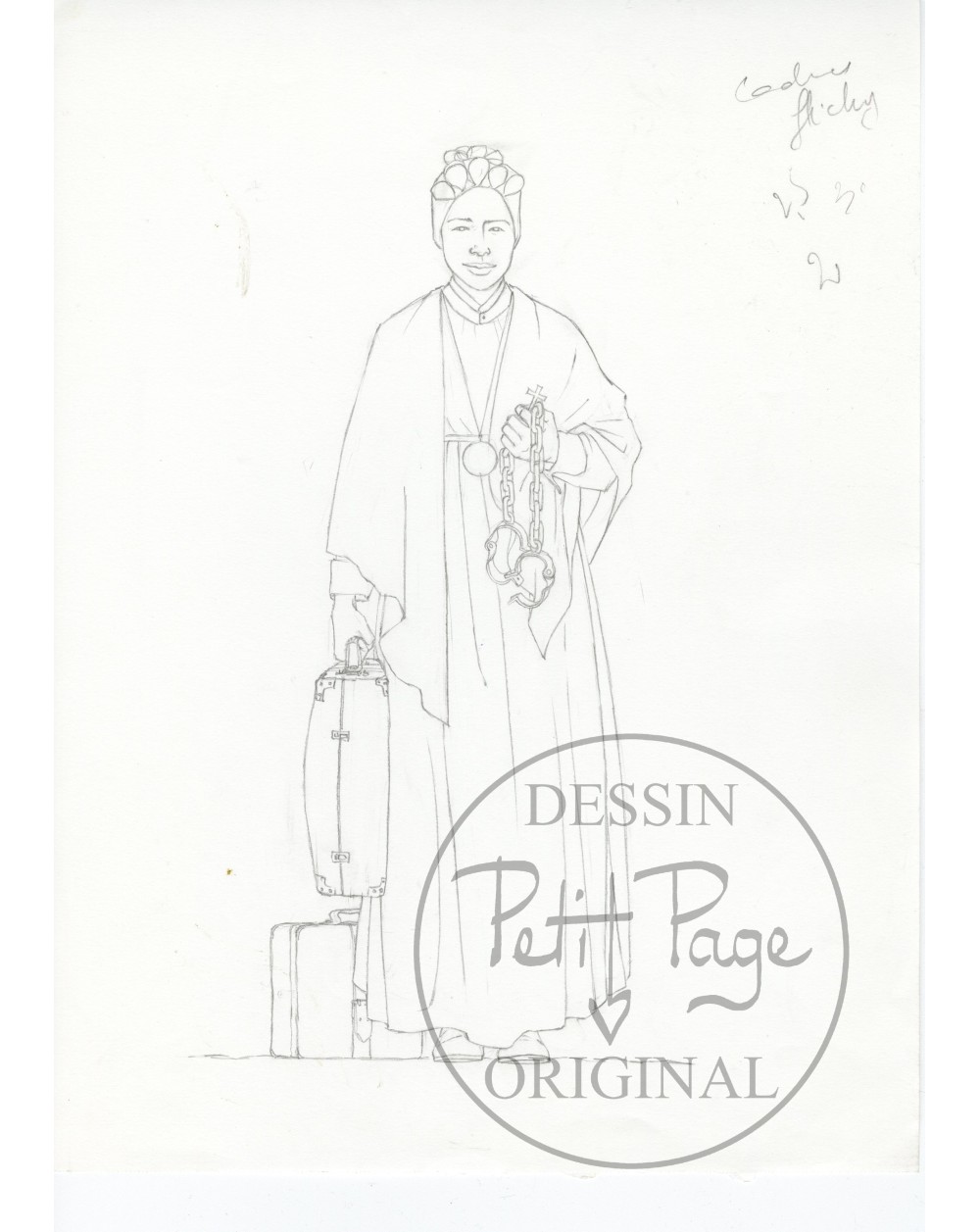 Envoyé avec un certificat de cession garantissant l'authenticité du dessin et encadrant l'utilisation de l'image. Les originaux ici en vente sont cédés seulement à 0 titre d'objet, sans aucun droit de reproduction ni d'exploitation, ni à titre privé ni à titre public.