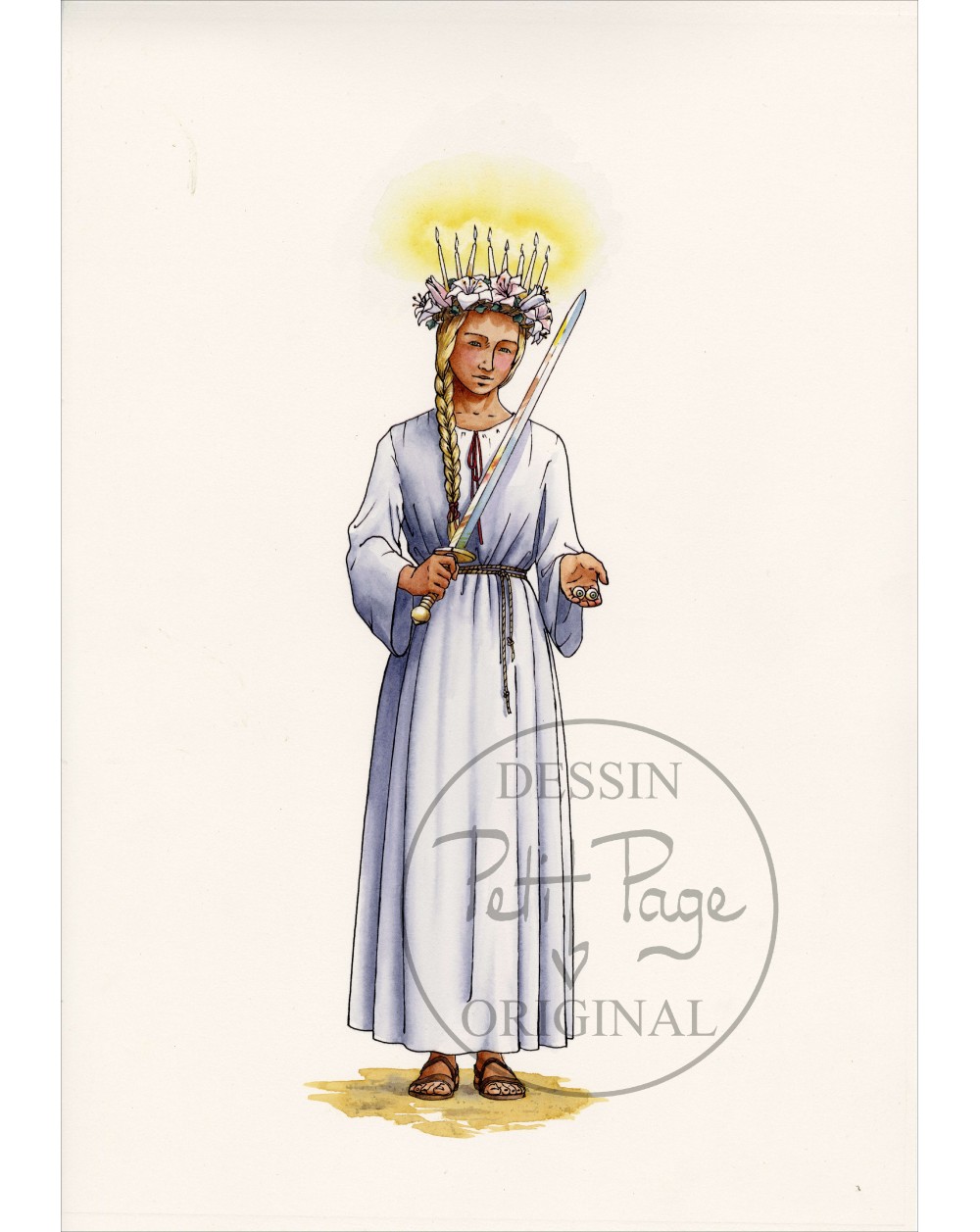 Aquarelle originale. Format: 30 x 42 cm. Papier Arches satiné 300g. Possibilité de rajouter une auréole au crayon de couleur sur demande dans les notes au moment de la commande.