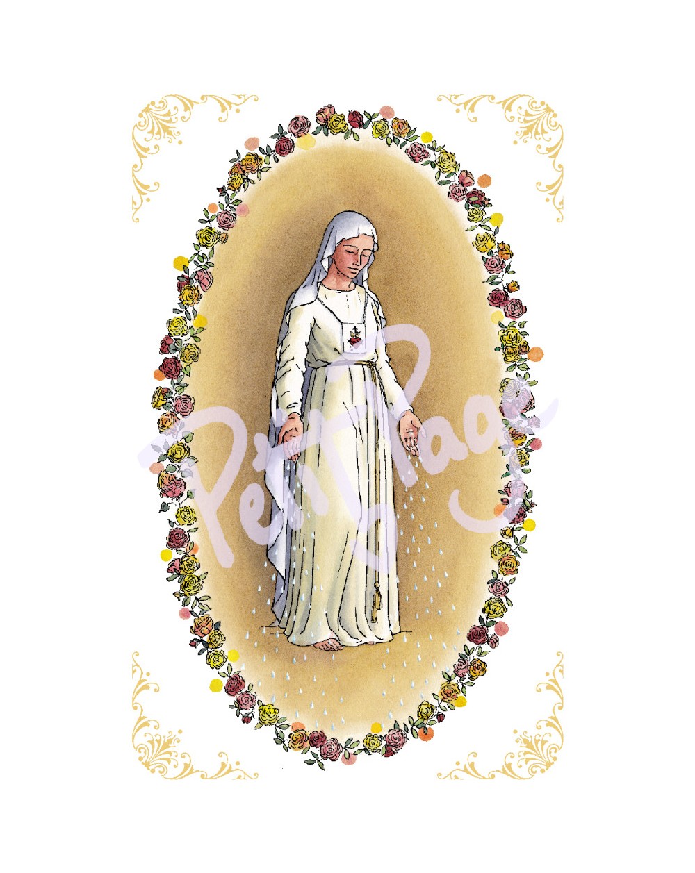 Carte à coins arrondis, pelliculée recto-verso, sur papier 300g. Dimensions: 5.5 x 8.5 cm. Texte au verso.