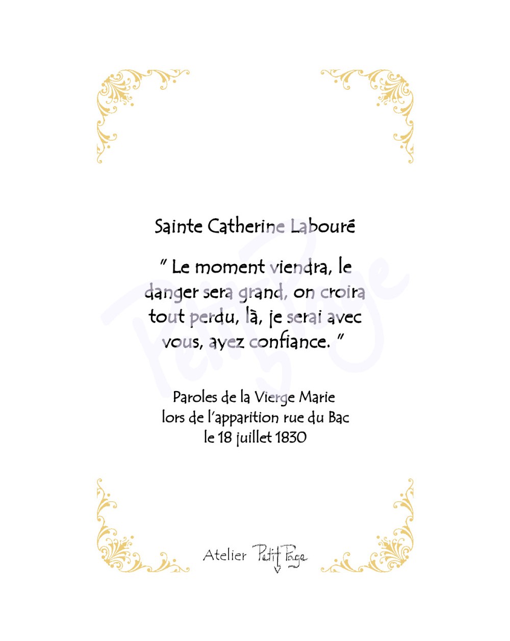 Carte à coins arrondis, pelliculée recto-verso, sur papier 300g. Dimensions: 5.5 x 8.5 cm. Texte au verso.