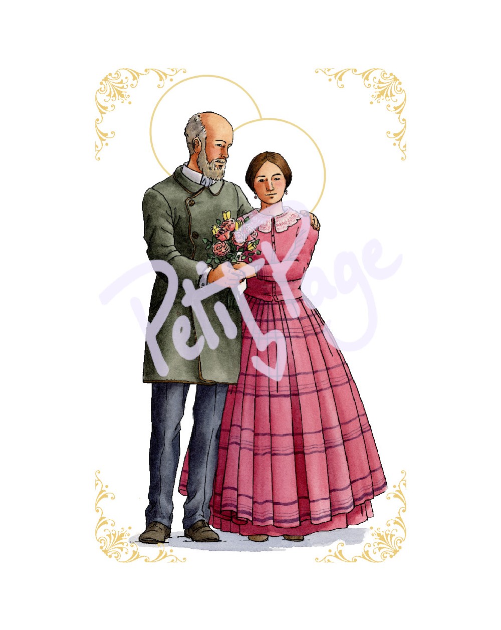 Carte à coins arrondis, pelliculée recto-verso, sur papier 300g. Dimensions: 5.5 x 8.5 cm. Texte au verso.
