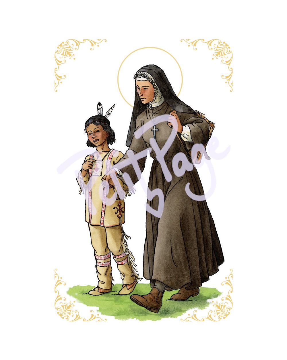 Carte à coins arrondis, pelliculée recto-verso, sur papier 300g. Dimensions: 5.5 x 8.5 cm. Texte au verso.