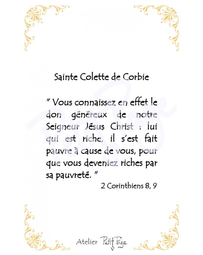 Carte à coins arrondis, pelliculée recto-verso, sur papier 300g. Dimensions: 5.5 x 8.5 cm. Texte au verso.